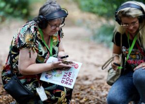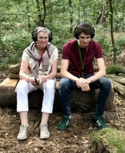 En daarna was het zover en vertrokken de eerste wandelaars – voorzien van koptelefoon, audioguide en loepje – het bos in!