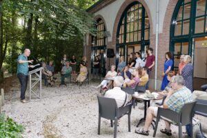 In een sfeervol, zonnig Odapark is op zondag 21 augustus ‘GEWORTELD, een audioboswandeling’ geopend. Met een inleiding van Odapark-voorzitter Patrick van der Broeck en de Venrayse wethouder Kunst & Cultuur Wim De Schryver. De officiële opmaat werd gegeven door filosoof en auteur van het boek ‘De Boom’: Govert Derix. Op prachtige poëtische wijze gaf hij woorden aan waar GEWORTELD over gaat: onze relatie met de natuur en vice versa.